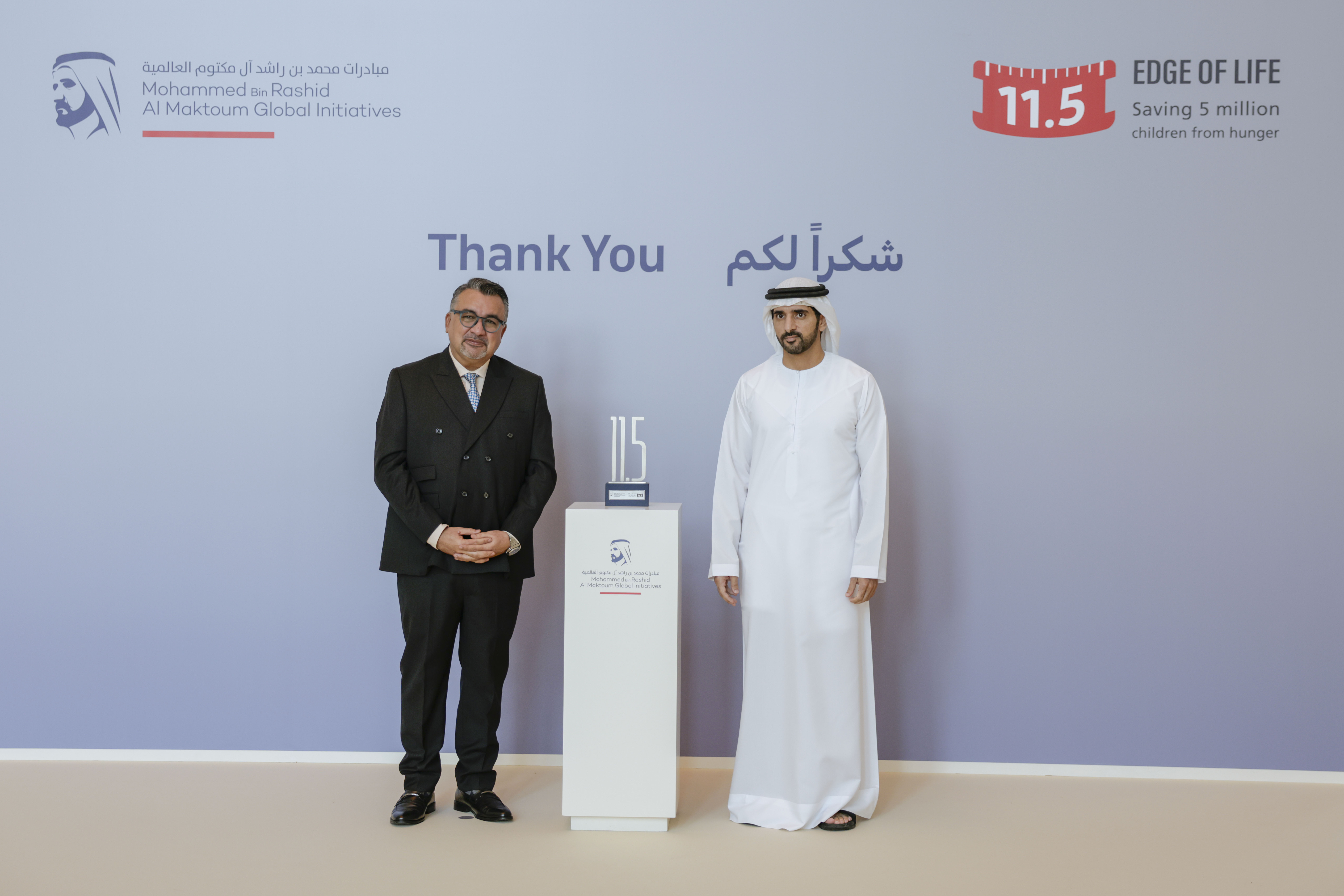 كما أعرب سموّه عن تقديره للمساهمين والداعمين للحملة، مثمناً دورهم في دعم أهدافها الإنسانية النبيلة في مكافحة جوع الأطفال في المجتمعات الأكثر احتياجاً.