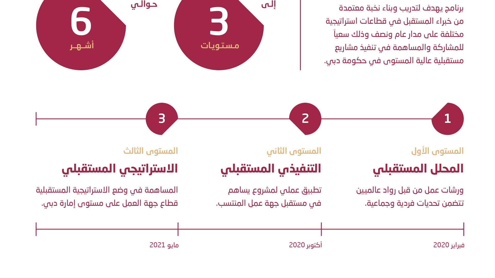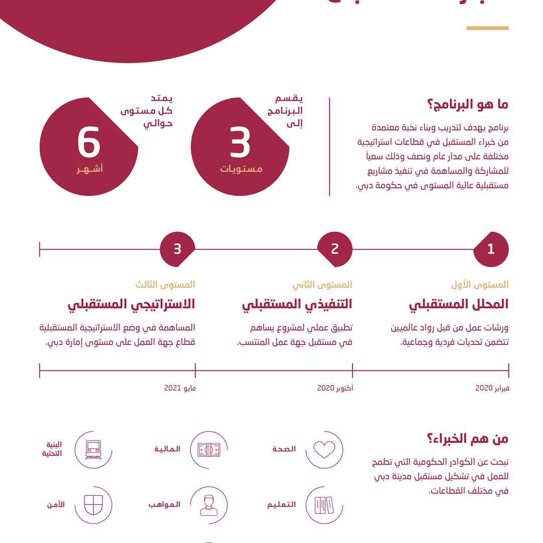 The Dubai Future Experts Programme, jointly developed by The Executive Council and the Dubai Future Foundation, seeks to enhance participants’ skills in strategic thinking, social intelligence, project management of future foresight and design in the educational, cultural and technology sectors, decision making, policy and legislative development and strategy development for unlocking new opportunities in economic zones in the UAE.
